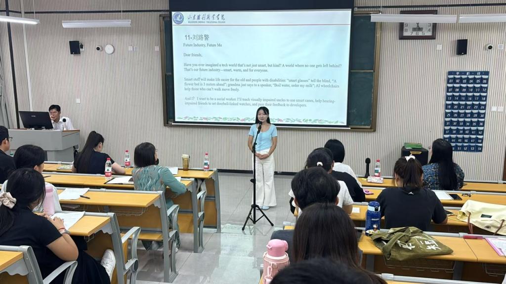 2025年9月8日,由国际学院承办的2025年大学生英语演讲大赛校园选拔赛在山东胜利职业学院华山路校区圆满落幕。本次比赛以"Future Industry, Future Me"为主题,汇集了来自全校各二级学院的39名优秀学子同台竞技。