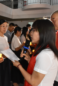 烛光映照着一张张充满敬意与期待的脸庞,也照亮了胜职教育未来的道路。许多师生眼角湿润,现场洋溢着感动与温暖的气息。