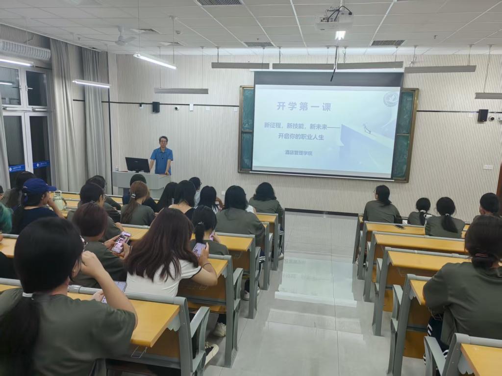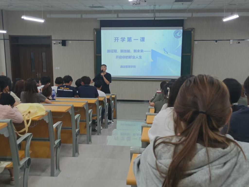 9月10日,酒店管理学院25级新生迎来了“新征程新技能新未来”为主题的开学第一课,酒店管理学院领导们对来自各地的莘莘学子表示最热烈的欢迎。
