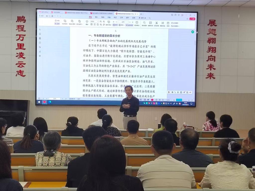 学校党委副书记、院长张玉珍围绕“打造‘油味’专业群”这一核心主题,结合学校油田办学优势与特色,系统阐述组建高水平专业群的递进式结构思路与内涵建设路径。他强调,要严格参照高水平专业群文件各项指标对标报表,针对专业群建设定位、组群内在逻辑、课程体系重构、建设必要性与可行性等关键维度精准发力,并就建设方案优化、申报书填报规范、支撑材料整合等工作提供专业指导,为后续建设奠定坚实基础。会议同时明确二级院部在专业群建设中的主体责任,为学校备战“双高计划“、推进高水平专业群申报厘清方向。