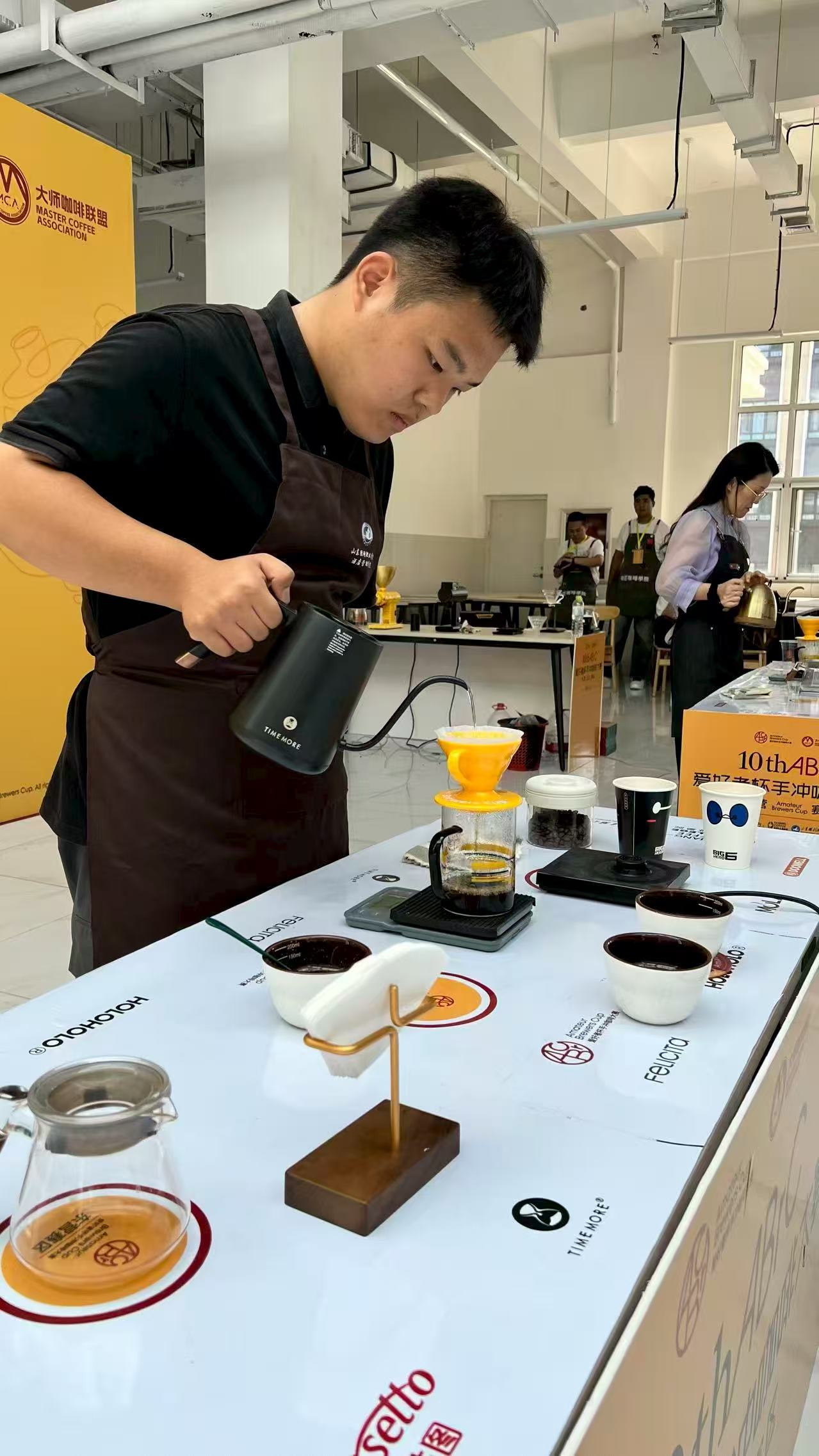 比赛中,选手们展现出精湛的冲煮技艺与专注的咖啡热情。尤为瞩目的是,山东胜利职业学院酒店管理学院24级酒店3班学生李鑫宇,在与经验丰富的社会专业选手同台竞技中发挥出色,历经多轮激烈角逐,最终斩获大赛亚军,充分体现了学院实践育人、以赛促教的优秀成果,也成为整场赛事的一大亮点。