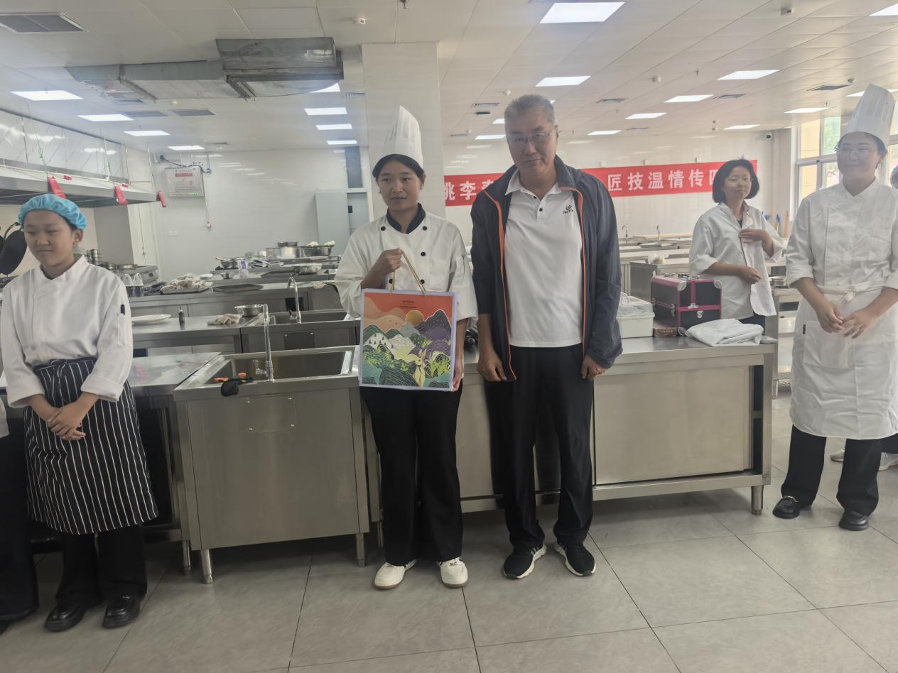 教师们纷纷亮出“绝活”,无论是需要精准火候掌控的抻面,还是工艺繁复、造型精美的象形点心,都展现了他们高超的专业技能和深厚的职业素养。教师们的精湛表演,不仅是一场高水平的技能比拼,更是一次生动的教学示范交流,为观摩的师生提供了宝贵的学习机会,有效促进了“双师型”教师队伍的建设。