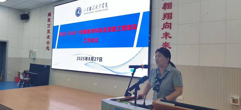 2025年8月27日下午,学校2025年秋季学期教学科研及质量工程建设会议在济南路校区南电教室顺利召开。学校领导,校长助理,各机关处室和二级学院相关人员,共90余人参加。会议由教务处副处长刘丽萍主持召开。